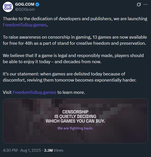 GOG.com – X post announcing #FreedomToBuy (Aug 1 2025)