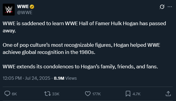 X trends on Hulk Hogan’s death (2025)